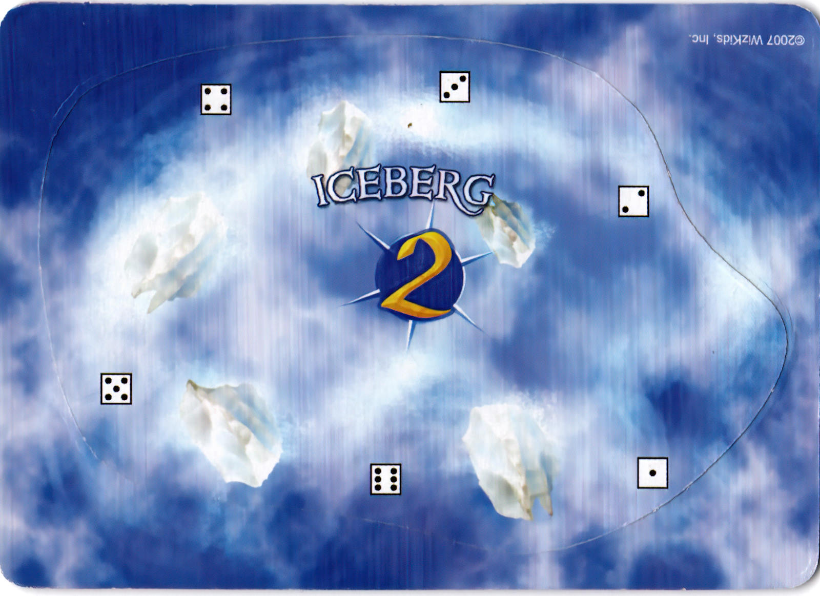 An iceberg has the numbers 1-6 printed around its edge, as well as a gold number printed at its center. At the beginning of each player's turn, before any actions are assigned, that player must roll a d6. Compare the result to the gold number printed on all icebergs in play. If the result matches any iceberg(s), those icebergs move that turn. For each iceberg that will move, roll another d6 and match the result to the number printed around the iceberg's edge. Measuring straight out from that number away from the iceberg, move the iceberg S. Do not turn or rotate it.