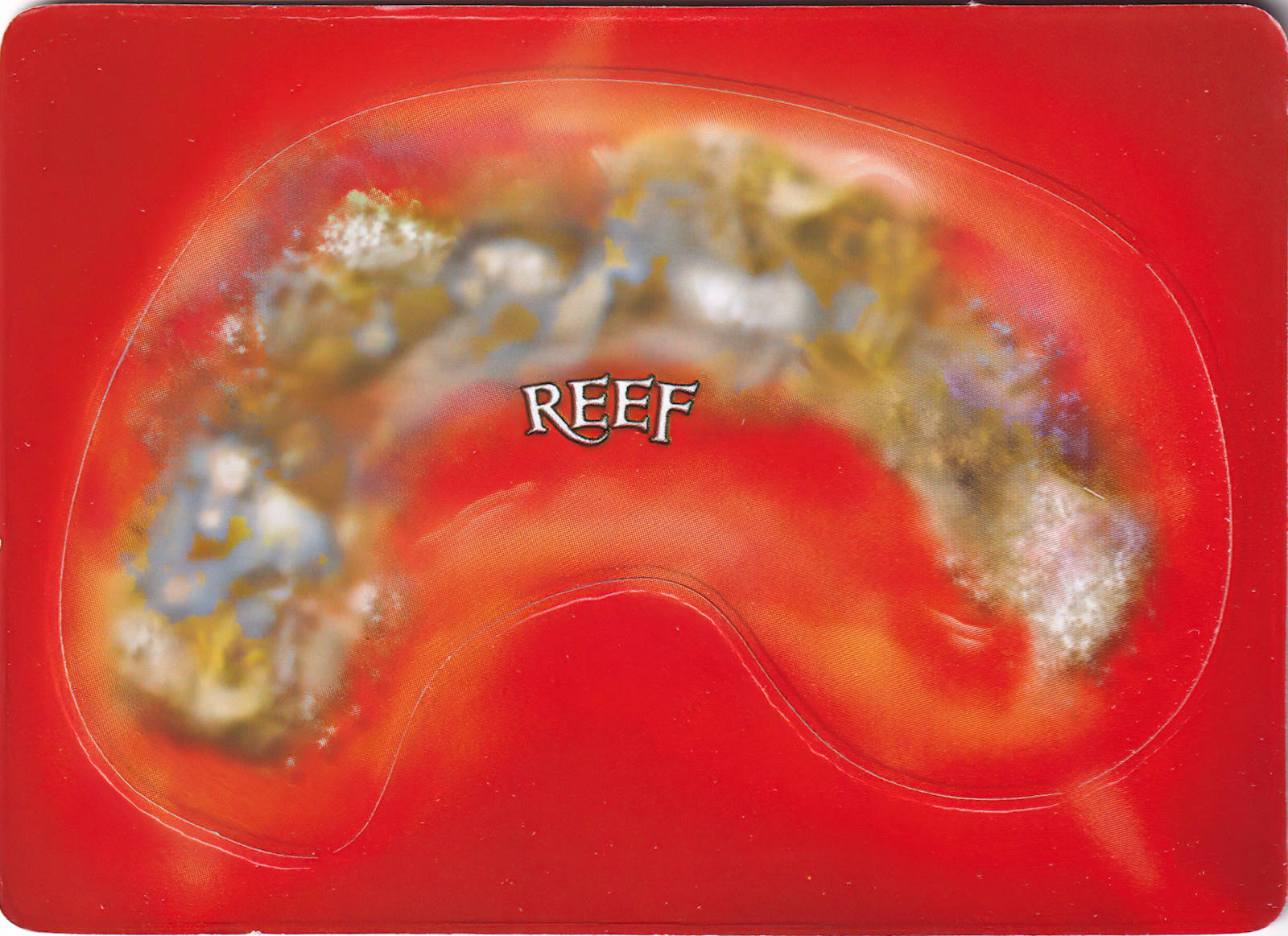 When any part of a ship or sea creature moves onto a reef, roll a d6. The result is the reef's rating until the end of that player's turn. Place the die result on the reef to remind you what the rating is. Compare the rating to how many masts or segments the game piece had when it was constructed. If the reef's rating is lower than this number of masts or segments, the game piece has a number of masts or segments eliminated equal to the difference.