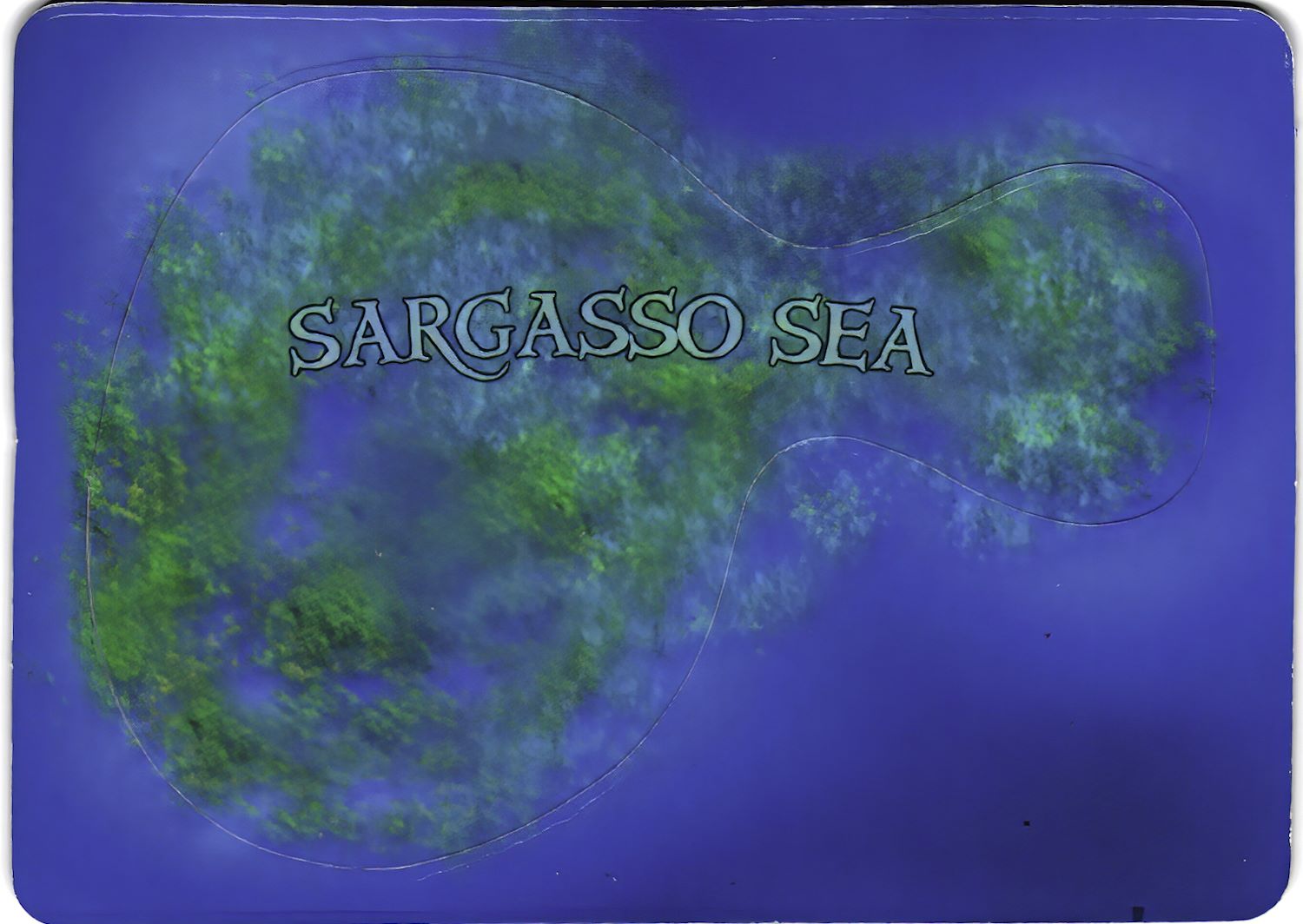 When a ship or sea creature moves over a Sargasso Sea, roll a d6. The result is the Sargasso Sea's rating until the end of that player's turn. Compare the rating to how many masts or segments the game piece had when it was constructed. If the Sargasso Sea's rating is more than the number of masts or segments, the game piece is tangled in the weeds and might not be able to move.