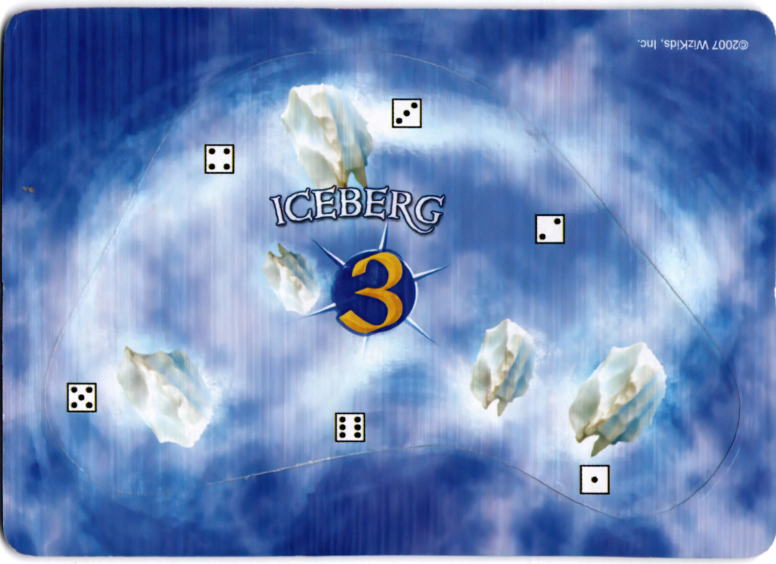 An iceberg has the numbers 1-6 printed around its edge, as well as a gold number printed at its center. At the beginning of each player's turn, before any actions are assigned, that player must roll a d6. Compare the result to the gold number printed on all icebergs in play. If the result matches any iceberg(s), those icebergs move that turn. For each iceberg that will move, roll another d6 and match the result to the number printed around the iceberg's edge. Measuring straight out from that number away from the iceberg, move the iceberg S. Do not turn or rotate it.