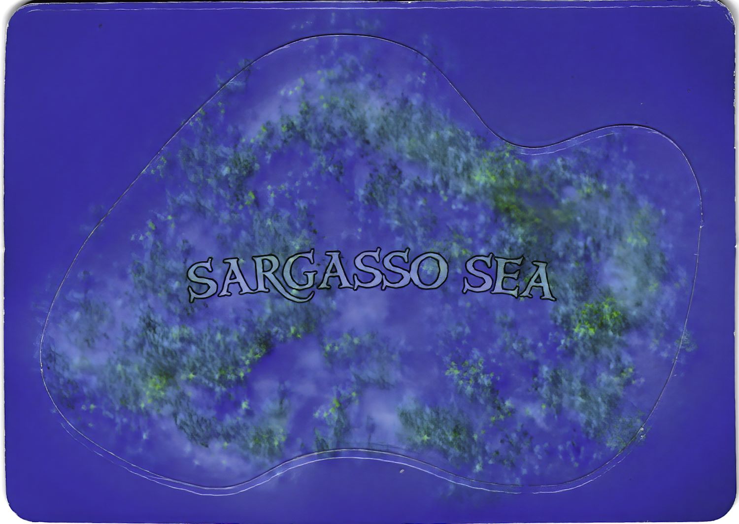 When a ship or sea creature moves over a Sargasso Sea, roll a d6. The result is the Sargasso Sea's rating until the end of that player's turn. Compare the rating to how many masts or segments the game piece had when it was constructed. If the Sargasso Sea's rating is more than the number of masts or segments, the game piece is tangled in the weeds and might not be able to move.