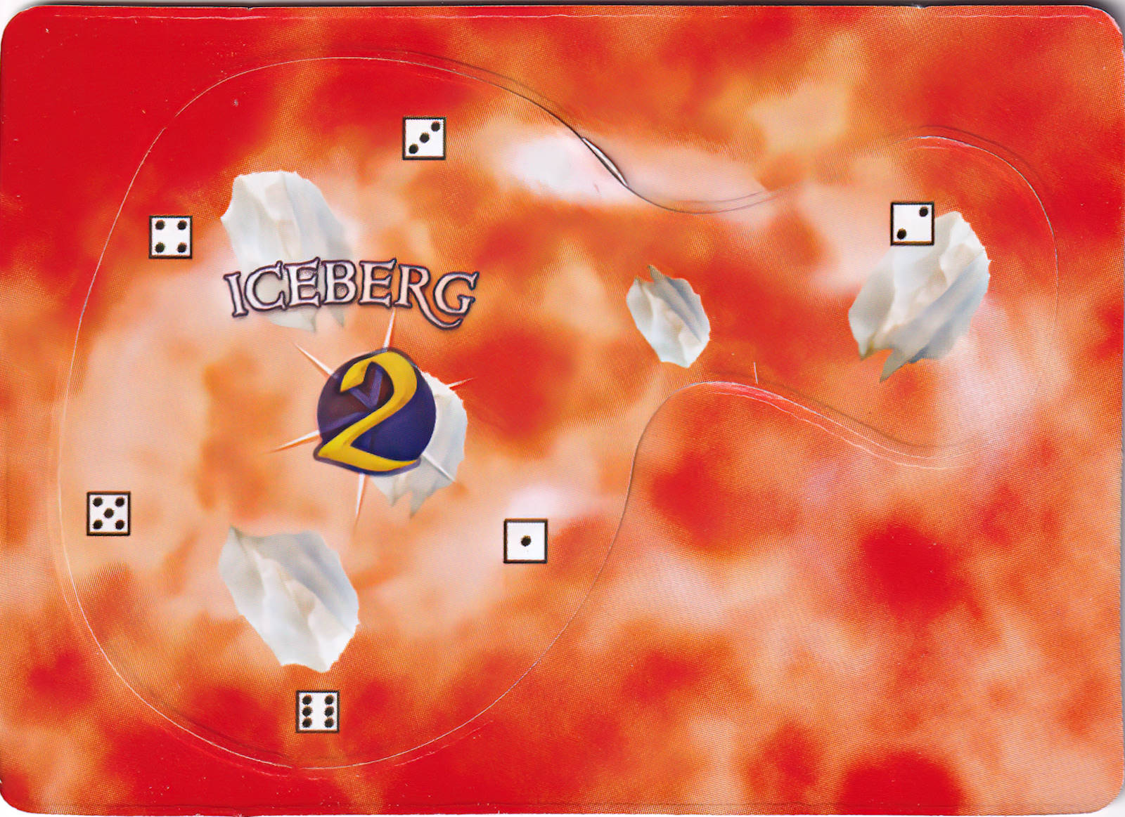 An iceberg has the numbers 1-6 printed around its edge, as well as a gold number printed at its center. At the beginning of each player's turn, before any actions are assigned, that player must roll a d6. Compare the result to the gold number printed on all icebergs in play. If the result matches any iceberg(s), those icebergs move that turn. For each iceberg that will move, roll another d6 and match the result to the number printed around the iceberg's edge. Measuring straight out from that number away from the iceberg, move the iceberg S. Do not turn or rotate it.