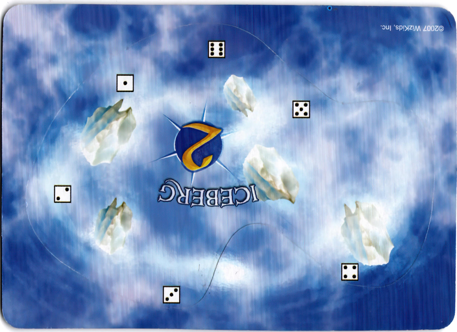 An iceberg has the numbers 1-6 printed around its edge, as well as a gold number printed at its center. At the beginning of each player's turn, before any actions are assigned, that player must roll a d6. Compare the result to the gold number printed on all icebergs in play. If the result matches any iceberg(s), those icebergs move that turn. For each iceberg that will move, roll another d6 and match the result to the number printed around the iceberg's edge. Measuring straight out from that number away from the iceberg, move the iceberg S. Do not turn or rotate it.