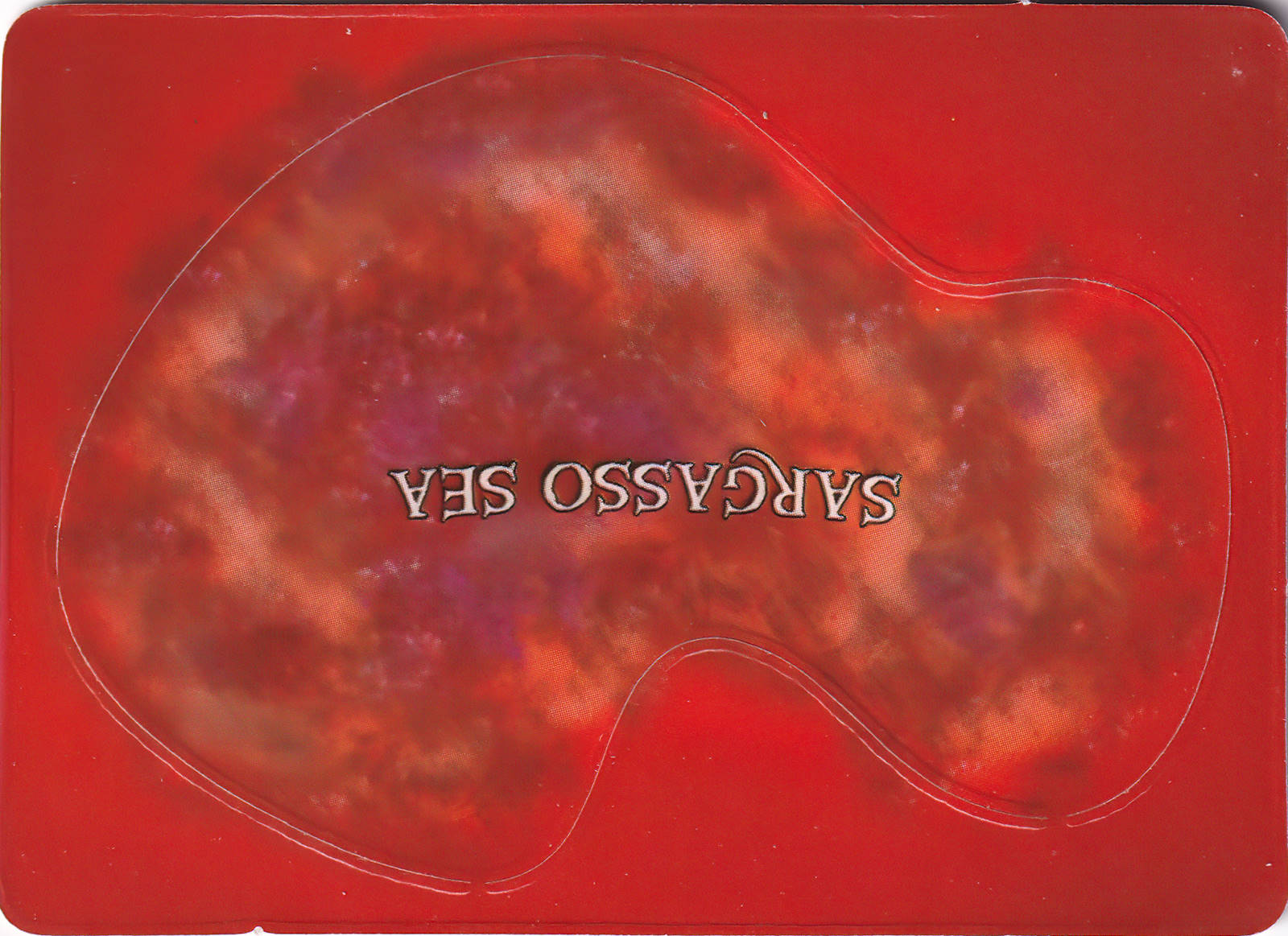 When a ship or sea creature moves over a Sargasso Sea, roll a d6. The result is the Sargasso Sea's rating until the end of that player's turn. Compare the rating to how many masts or segments the game piece had when it was constructed. If the Sargasso Sea's rating is more than the number of masts or segments, the game piece is tangled in the weeds and might not be able to move.